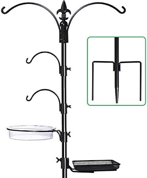 It’s best to opt for something that has an auger system, a special feature that enables you to firmly screw your feeder pole to the ground. Once that pole is firmly secured, you’ll never have to worry about your pole tilting or dropping any one of the bird feeders that it’s supporting.