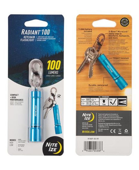The Nite Ize Radiant 100 Keychain Flashlight is a well-made device that is waterproof and built to handle rigorous use. The light output is excellent, although short-lived. It’s not the most environmentally friendly choice since it’s not recyclable. The attachment is secure, which you can use either on a keychain or clipped to a belt loop.